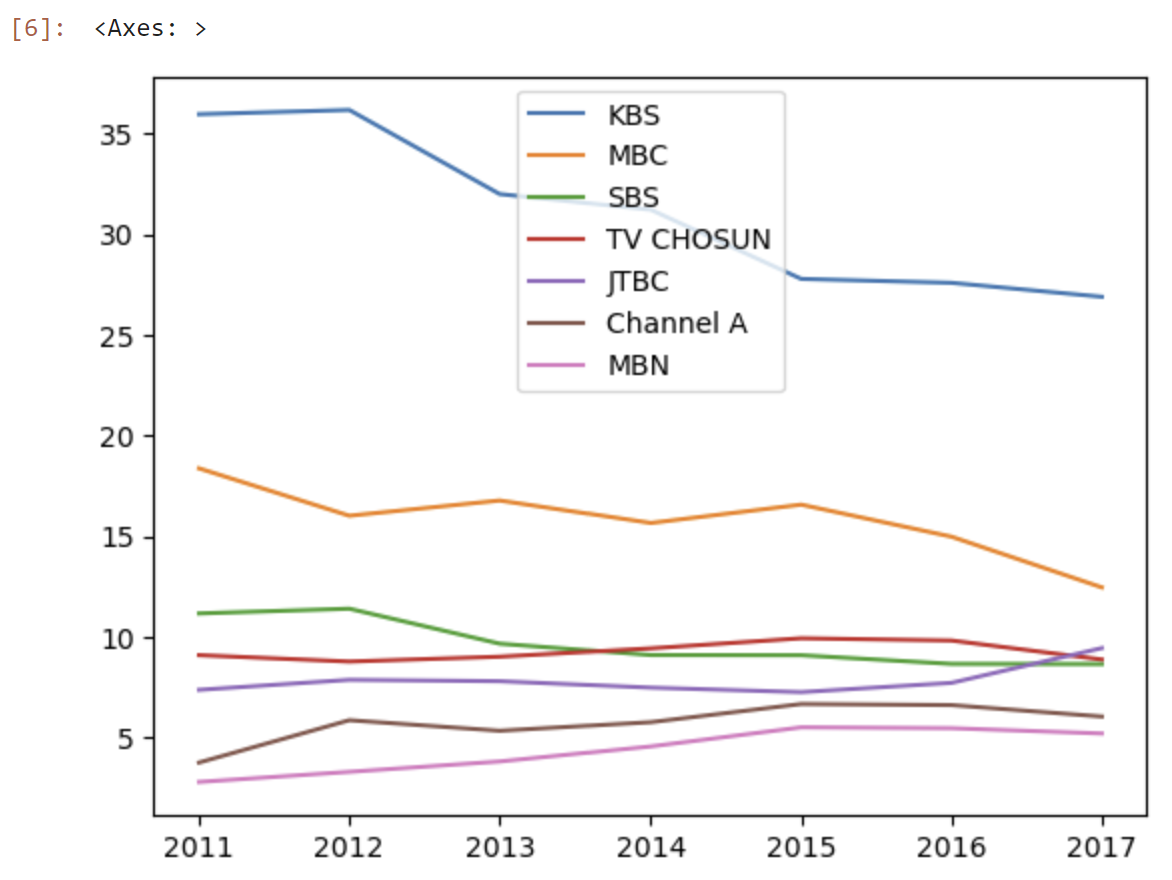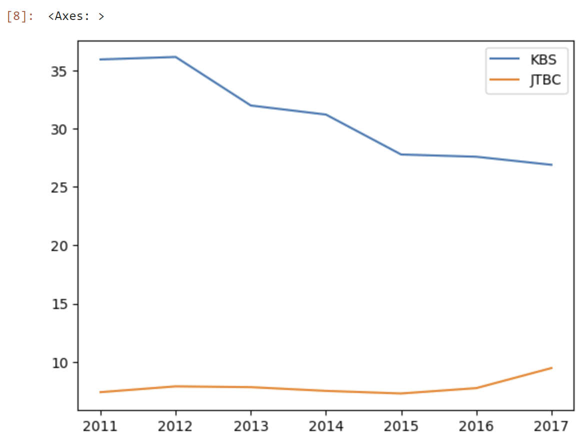 y에 KBS를 입력하면, KBS의 그래프만을 보여준다.