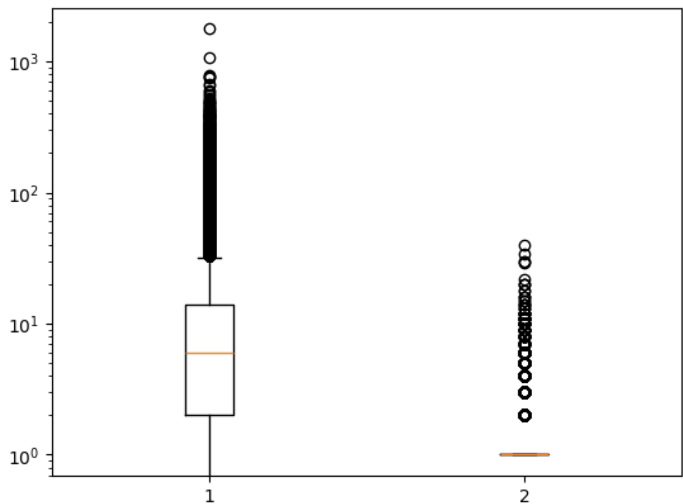 plt.boxplot(ns_book7[['대출건수', '도서권수']]