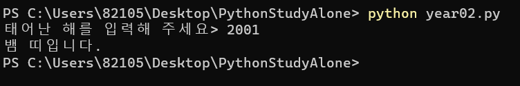 태어난 해를 입력하면 코드에 따라 알맞은 결과를 얻을 수 있음!