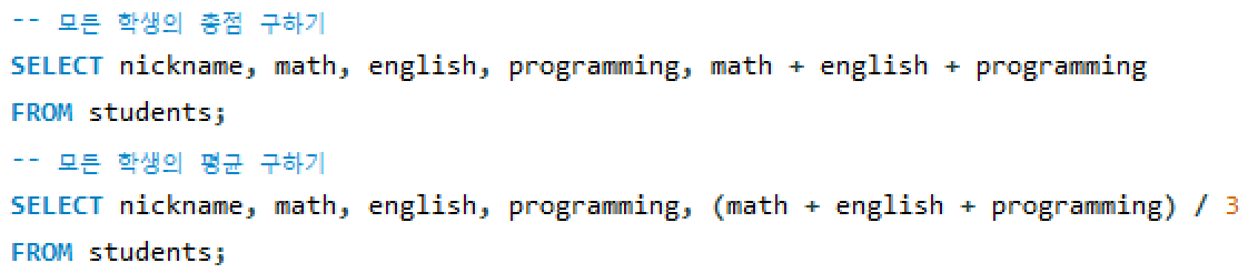 주석: 쿼리에 대한 설명을 메모로 작성한 것, 쿼리 실행에 아무런 영향 X