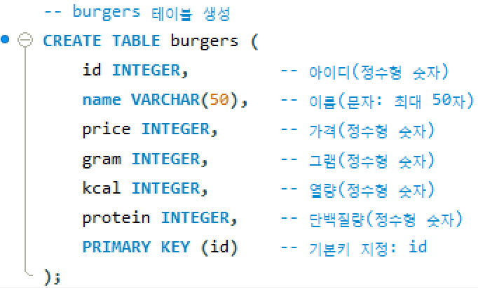 : 테이블을 만들 때 사용하는 CREATE TABLE 문