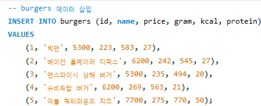 테이블에 데이터를 삽입할 때는 INSERT INTO 문을 사용