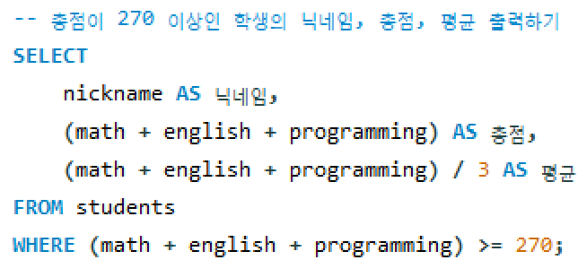 AS 키워드: 칼럼이나 테이블에 별칭을 지정하는 키워드,