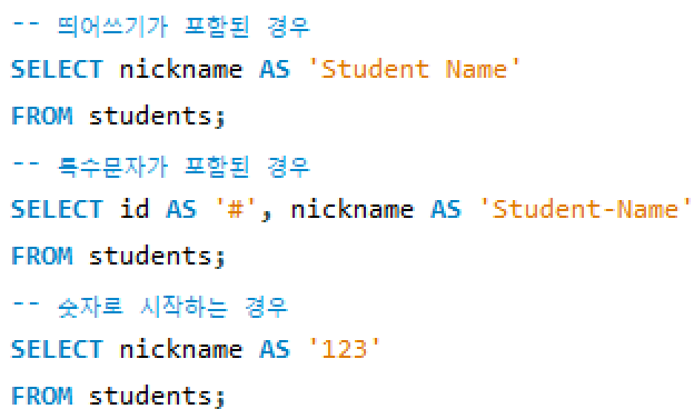 해당 쿼리 출력 결과에만 임시로 나타나며, 쿼리의 가독성을 높이고 쿼리를 더 간결하게 해준다.