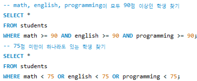 논리연산자: 두 조건을 조합해 새로운 조건을 만드는 연산자 ex) AND, OR NOT