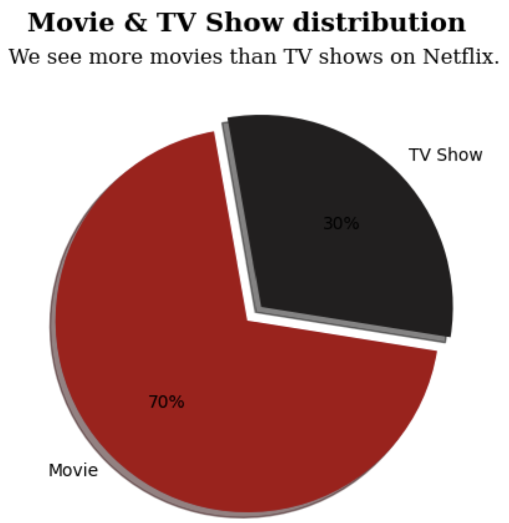 plt.title('We see more movies than TV shows on Netflix.', fontfamily='serif', fontsize=12)