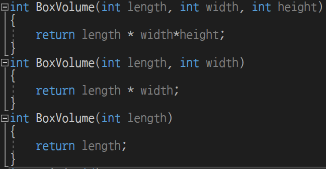 문제 01-3 [매개변수의 디폴트 값] BoxVolume를 '함수 오버로딩'의 형태로 재 구현해보자.
